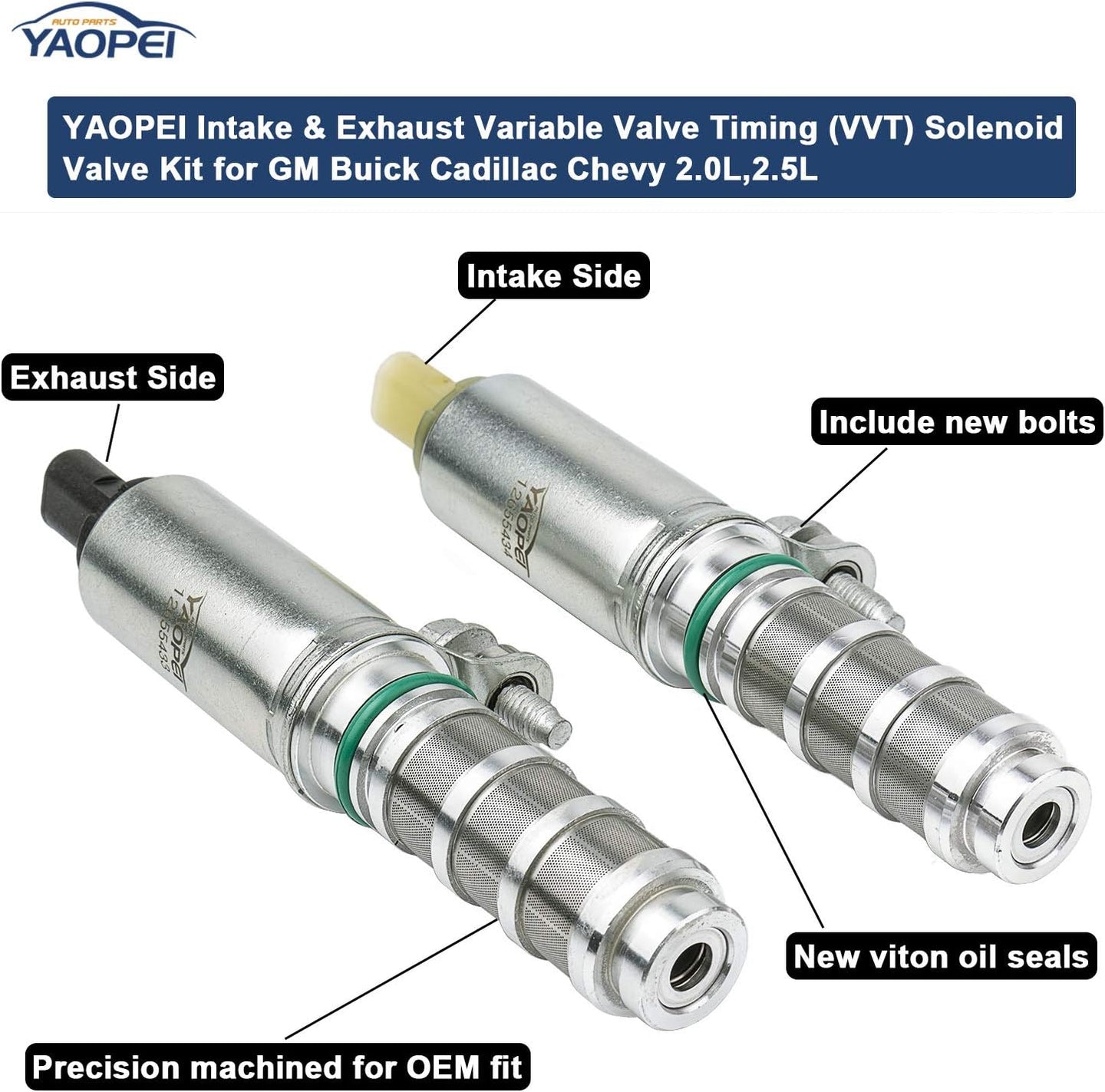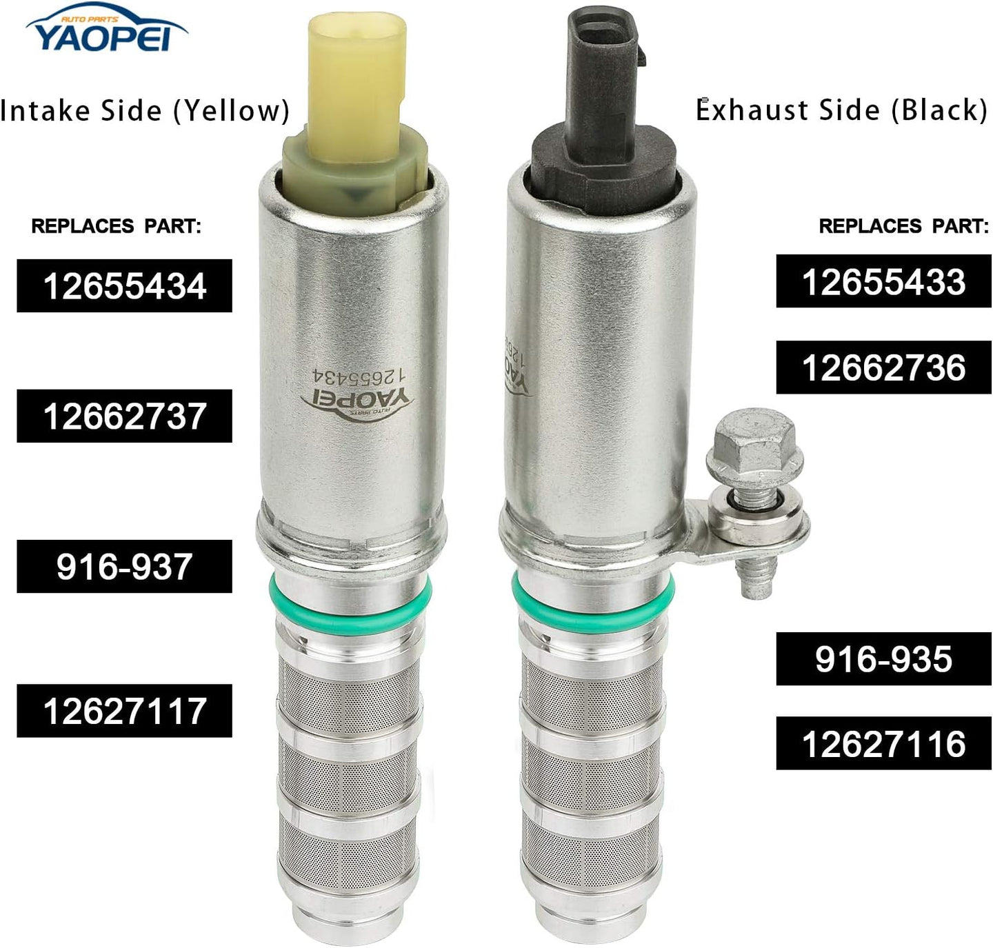 Direct OEM Replacement: Includes Intake Solenoid (OEM #12655434, 12662737, 12627117, 916-937) and Exhaust Solenoid (OEM #12655433, 12662736, 12627116, 916-935). Fixes common issues like poor fuel economy, hesitation, and decreased drivability.