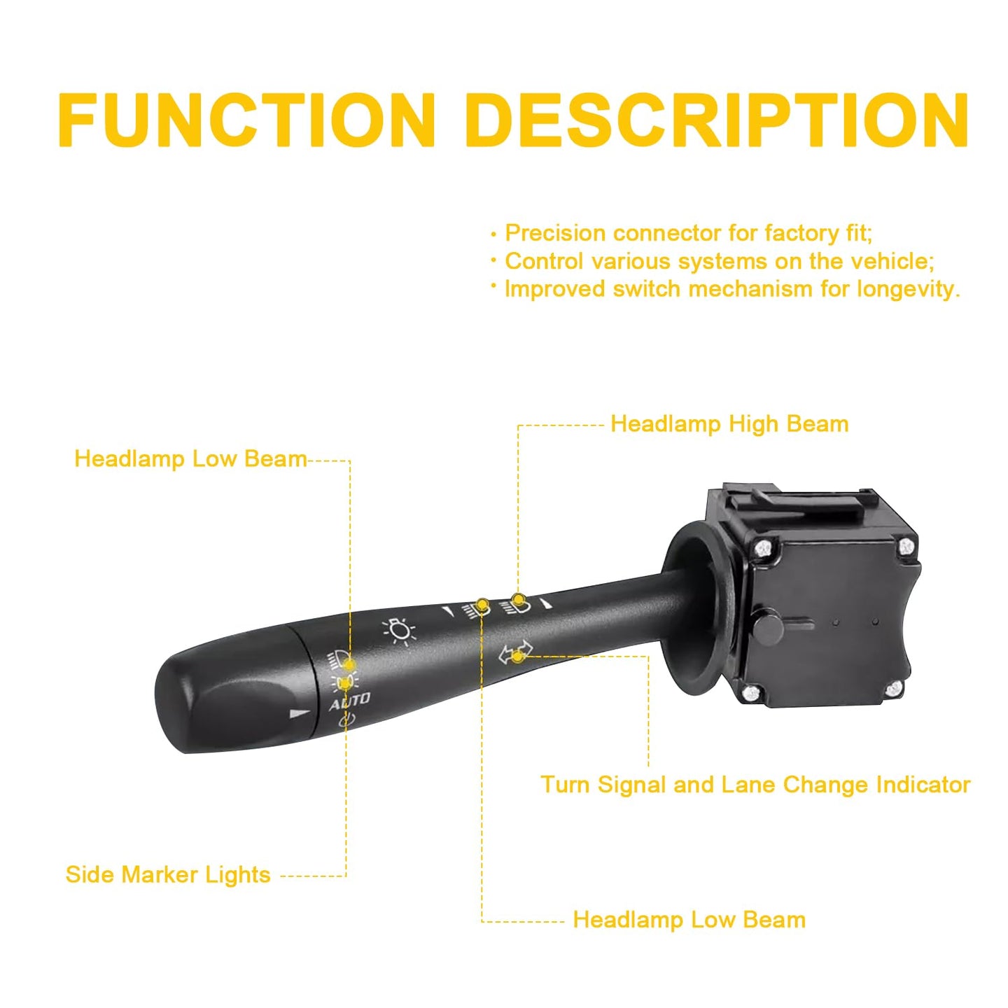 Replace your faulty or worn-out multi-function switch with this high-quality turn signal switch compatible with a range of GM vehicles. Designed for a perfect fit and long-lasting durability, this switch is a direct replacement part that ensures your lights, signals, and headlamp dimmer work smoothly.